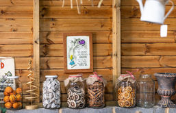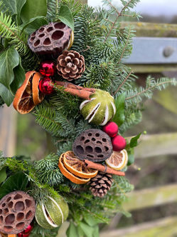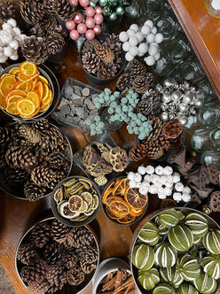 You’ll choose from a variety of sundries, from pine cones, lotus seed pods, fruit slices, cinnamon, baubles & ribbons!